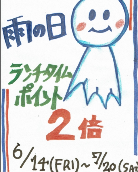今年も6月14日(金)~7月20日(土)の期間、ランチポイントカードポイント2倍キャンペーンを実施致しますカップ!