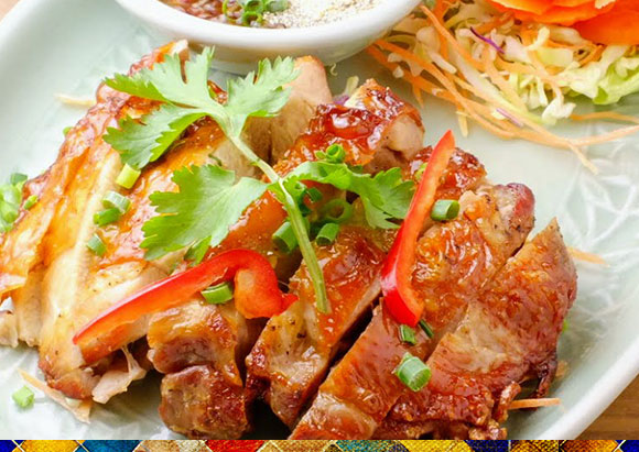 鶏肉に本場の調味料で下味をつけ、じっくり焼き上げたタイの焼き鳥です。ジューシーな鶏の旨味にスパイスやハーブの風味が加わって、シンハーとの相性もぴったり。ぜひ一度召し上がっていただきたい、当店でも大変人気の逸品です。