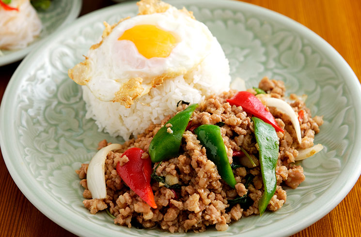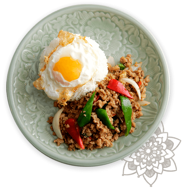 - パッガパオムーカイダオ(豚ひき肉のバジル炒めご飯)