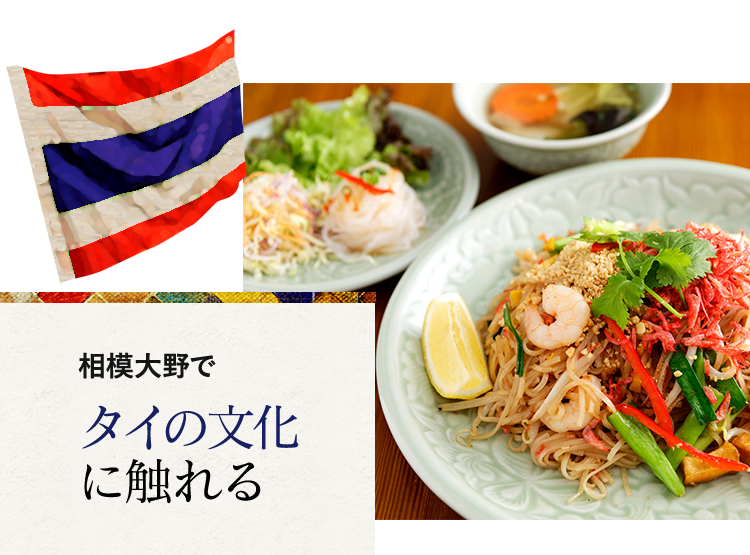 タイ出身のシェフが作る本格タイ料理と、本場のハーブ、調味料、スパイスなどを説明できる商品知識を持った日本人のスタッフ。タイ料理からタイの文化や良さを相模大野で広めていき、関わる全ての人が幸せになれるように。お客様やスタッフの素晴らしい笑顔のために、美味しい料理、サービス、そして感動をご提供しています!