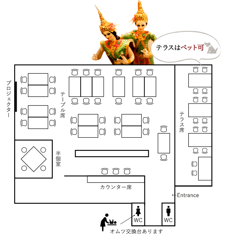 相模大野駅北口近くのランチ、ディナーはタイ料理「Soi Gapao(ソイガパオ)」。店内は、タイのインテリアを散りばめた雰囲気ある空間です。タイの文化を感じながら、当店のお料理をご堪能ください。